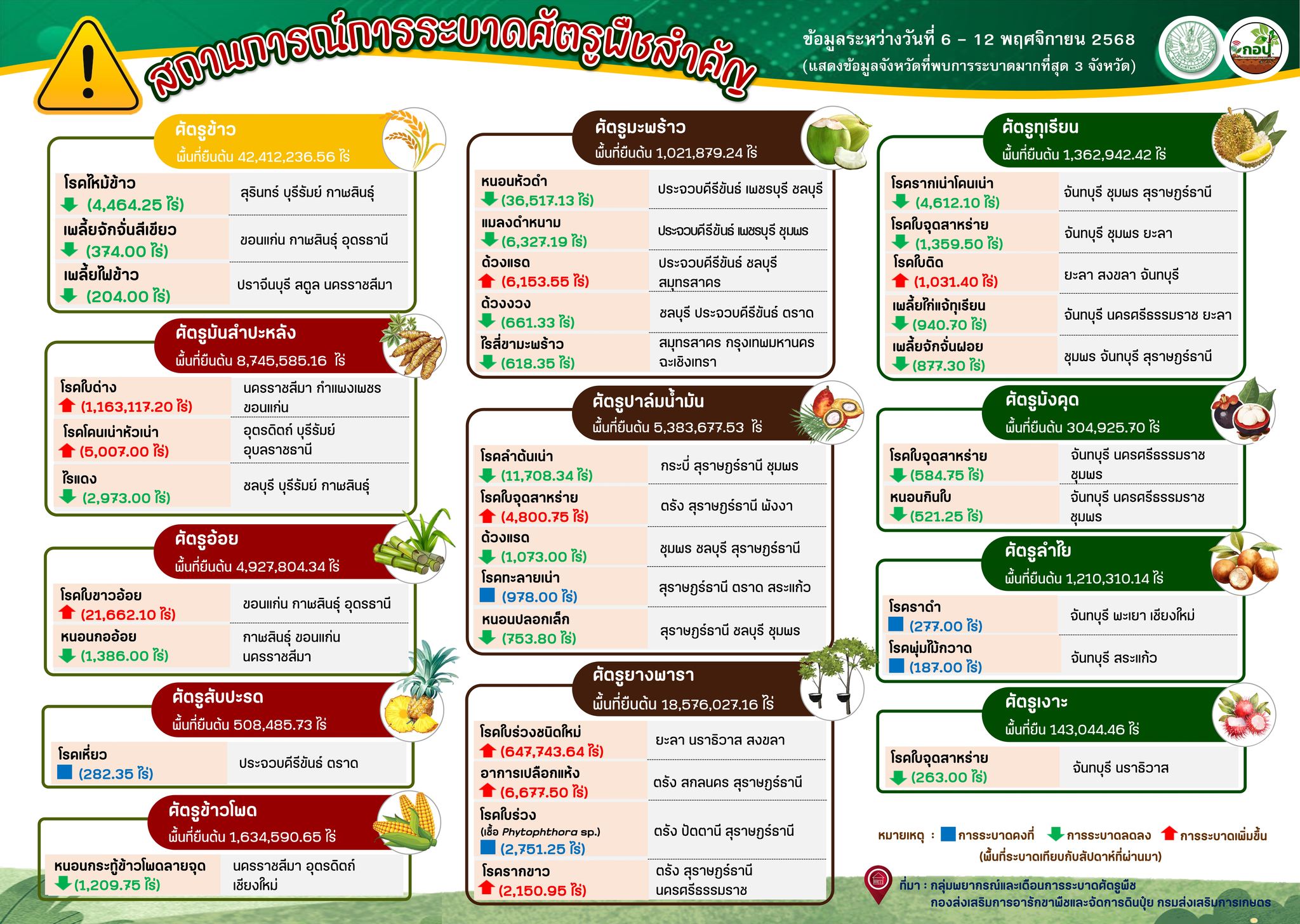 สรุปสถานการณ์การระบาดศัตรูพืชสำคัญ ระหว่างวันที่ 20 – 26 พฤศจิกายน 2568 admin.pmc051 สัปดาห์ ago1 สัปดาห์ ago 0